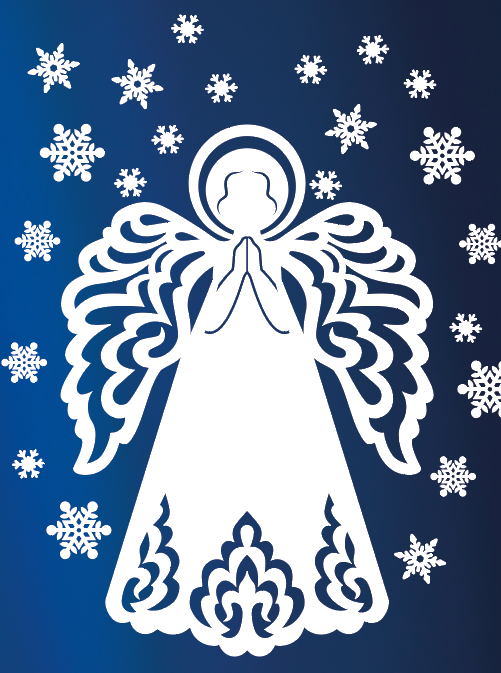 Piękne ażurowe anioły + komplet płatów śniegu to szybka dekoracja okienna lub na jasełka.