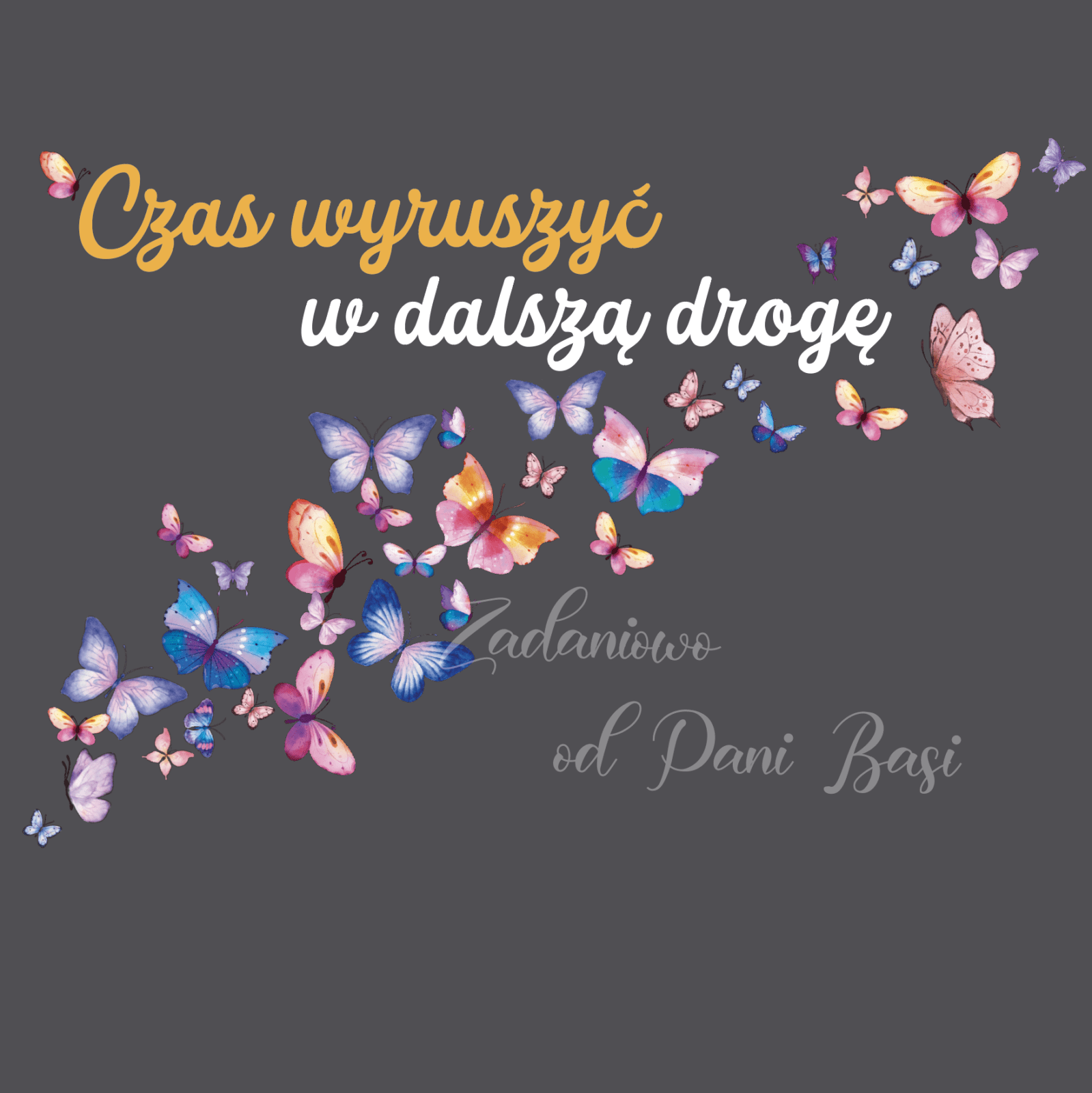 Zestaw składa się z plików PDF do samodzielnego druku. Znajdziesz tu aż 25 rodzai motylów w trzech rozmiarach, napis „Czas wyruszyć w dalszą drogę”.